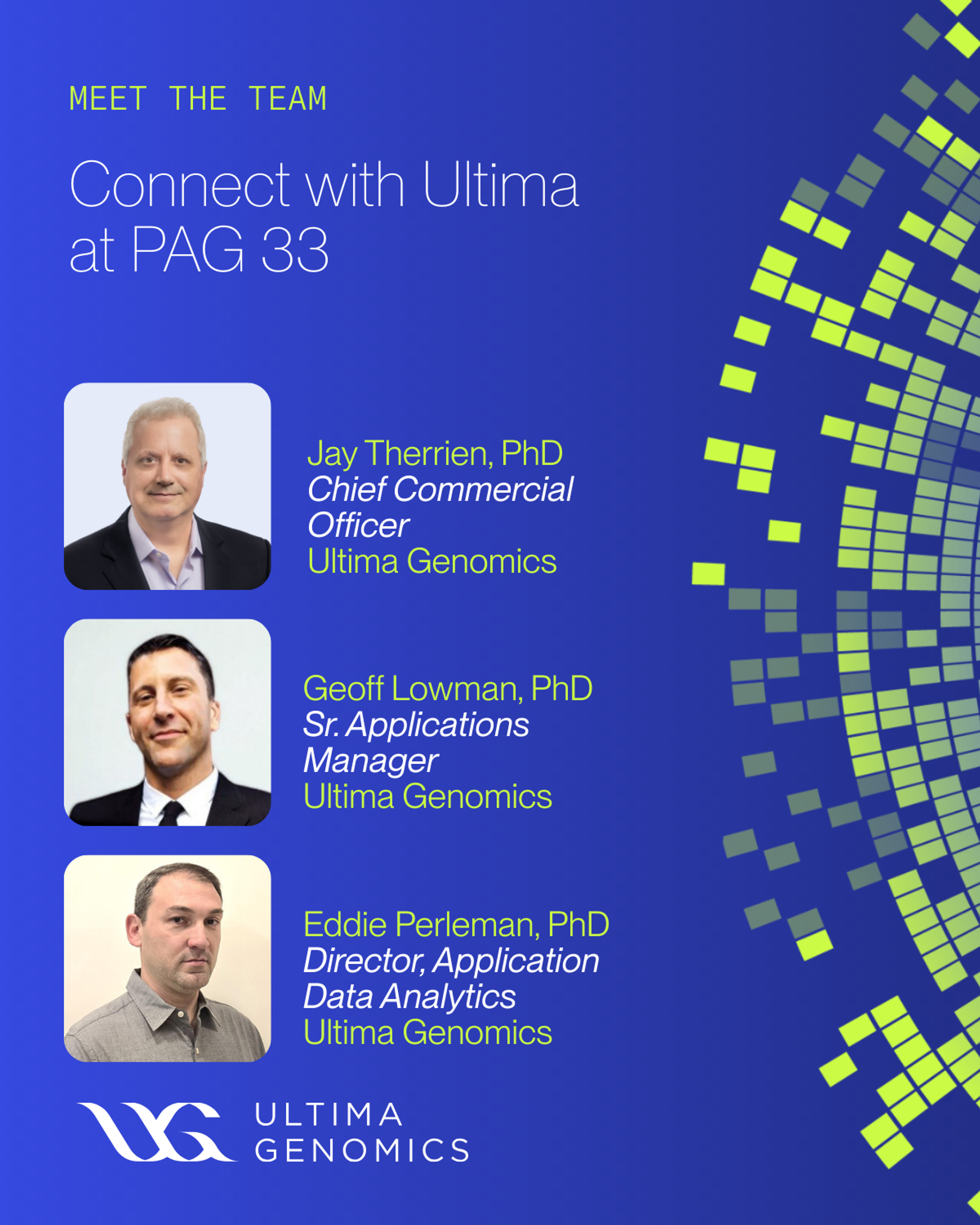 Visit the Ultima Genomics booth #206 to learn how the UG 100™ sequencer enables agricultural genomics researchers to Read More, Spend Less on their sequencing experiments. Our team of experts would love to share with you how the transformative economics of Ultima's mostly natural flow based sequencing can enable deeper whole genomes, more low pass genome genotypes or RNAseq samples.