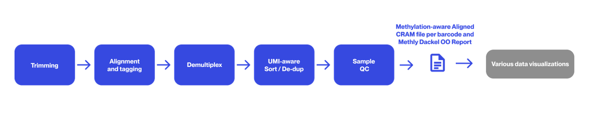 Watchmaker TAPS+ Library PrepVideo: TAPS+ on UltimaThe UG 100™ sequencing platform helps eliminate file transfer time and reduce compute costs with flexible and free open-source analysis on-platform. Whole genome methylation sequencing on the UG 100 sequencing platform includes read trimming, alignment (using a methylation-aware reference), and sorting. This is followed by automated on-instrument secondary methylation analysis using Methyl Dackel which provides output of methylation statistics and QC information.