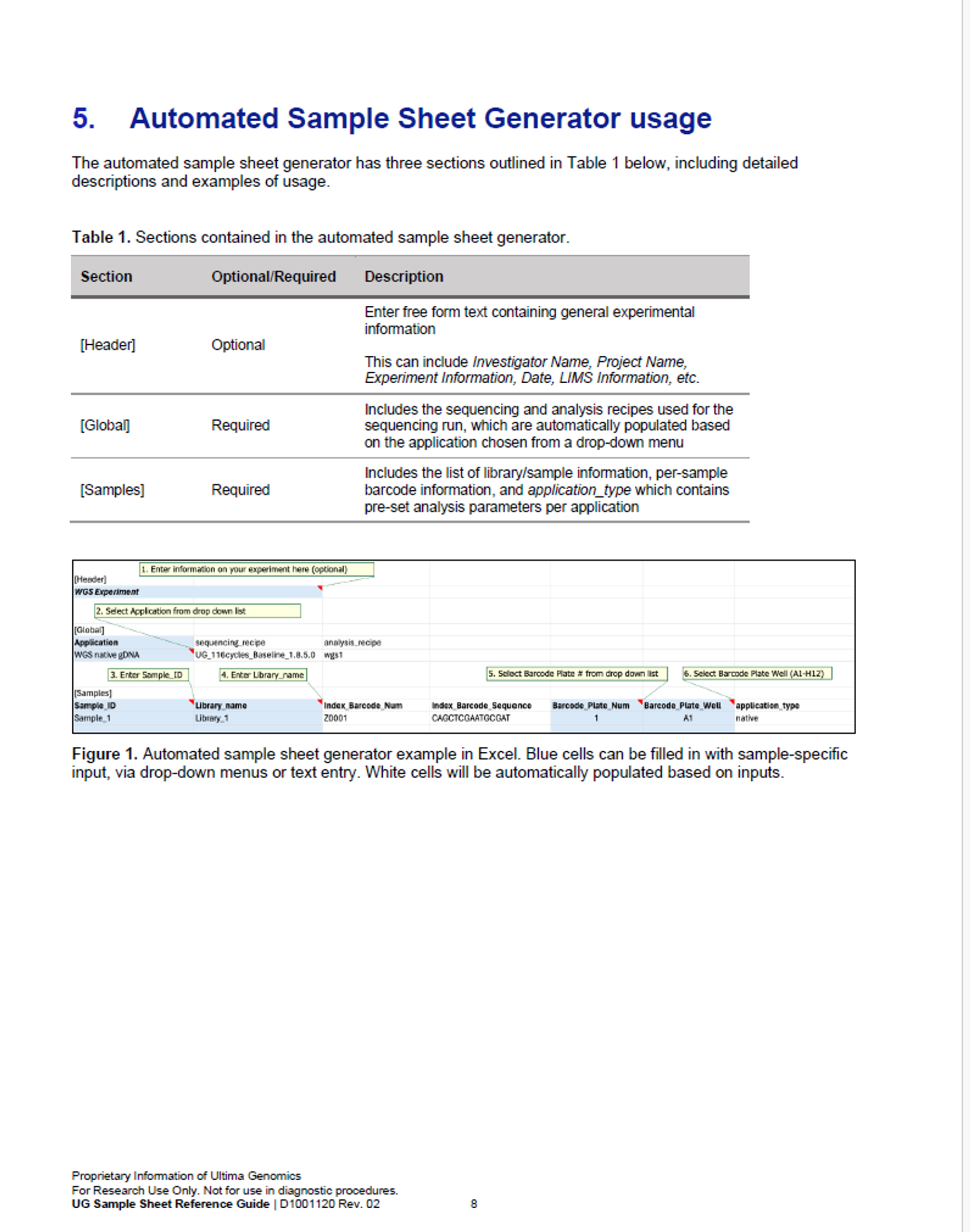 D1001120 Rev02 Guidance on the features and use of sample sheets when running the UG 100 sequening platform.